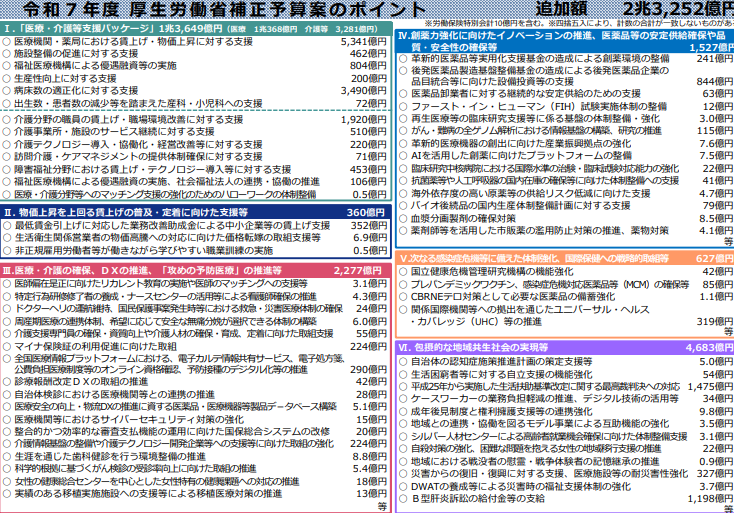 ▶ 詳細:https://www.mhlw.go.jp/wp/yosan/yosan/25hosei/dl/25hosei_point.pdf